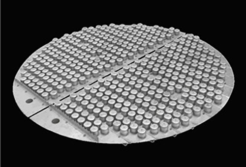 泡罩塔盘是工业上应用早的一种塔盘。是在塔盘板上 开许多圆孔,每个圆孔上焊接一个短管,称为升气管,管上